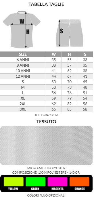 Il completo calcio in sublimatico modello tradizionale ha una vestibilità regular, è disponibile anche con manica lunga ed è adatto a calciatori professionisti e dilettanti.